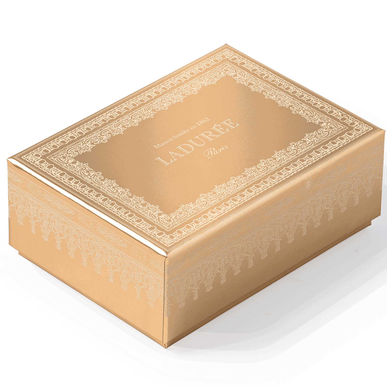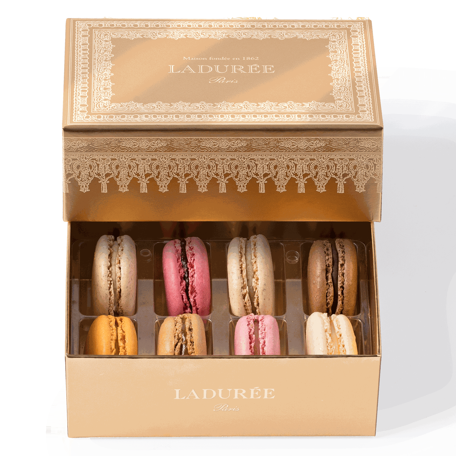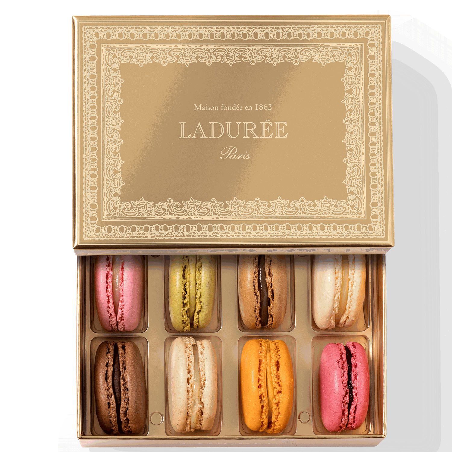 Christmas 2025 limited edition gold box with 8 assorted macarons from Ladurée